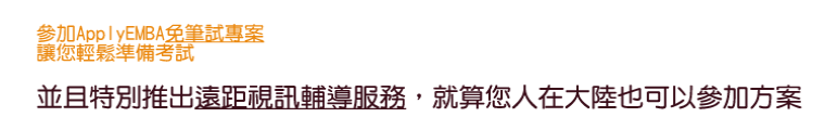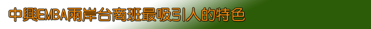 整合上海社會科學院和上海台商協會擁有的政商人脈平台與企業資源 上課地點在上海社會科學院,提供在中國工作的台商方便的上課位置 師資陣容堅強,結合兩岸頂尖經濟學家及一流企業管理師資 課程規劃強調兩岸經貿情勢之探討,讓台商更能掌握政治經濟敏感度並洞燭市場新機 考試方式採書面審查及面試,不用筆試就可以申請報考EMBA,一圓您的夢想!